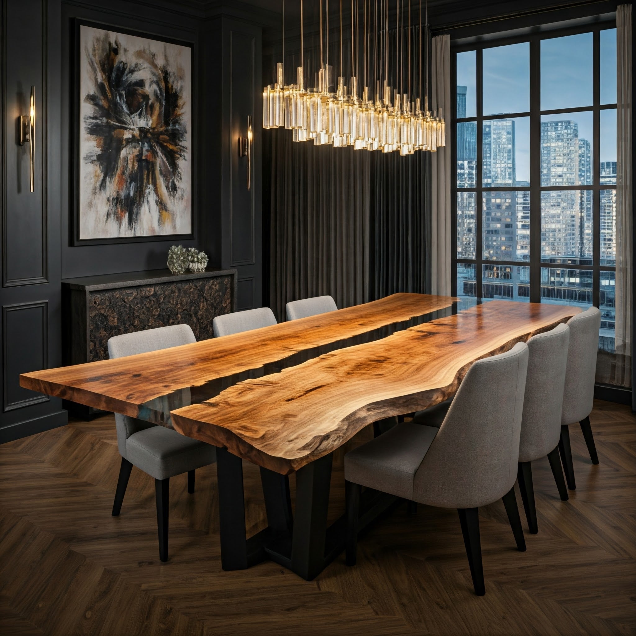 The Kintsugi Board is a multi-purpose serving and decor piece crafted from the finest walnut and hand finished to a radiant satin. Deeply inspired by the Japanese art of Kintsugiroi, this piece exudes historical depth at every angle. Made of solid Black Walnut, this piece was designed to last a lifetime.
